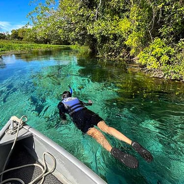 O destaque de Bonito é a flutuação nos rios cristalinos, onde você observa peixes, plantas e cardumes de água doce.